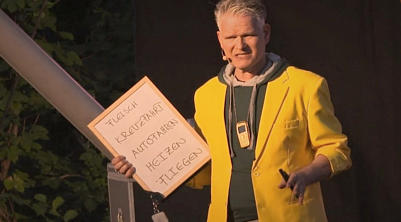 Building bridges for polar bears when the ice melts beneath them. The environmental magician is also a climate magician when he uses the Arctic ice shield as an example to show where climate magic would be necessary: where we don't look, we don't care and where we would never travel there.The climate magician filles the holes in the ice shield with red bridges so that polar bears can also see where they could fall into the water. Then he produces snow, giving this classic of magic classic a new, lasting meaning.