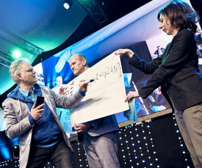 Um diese Botschaft emotional erlebbar zu machen, setzte der Umweltmagier alias „Mister Blue“ auf eine spektakuläre Inszenierung: Hinter einer Pyramide aus Bier- fässern erschien überraschend der CEO von thyssenkrupp. Der Umweltmagier jonglierte mit Fässern und Bierflaschen der Hachenburger Brauerei – als Sinnbild für Balance, Wandel und Präzision und als erste Brauerei, welche diesen neuen Stahl benutzt. Höhepunkt war ein Mentalmagie- Effekt mit echtem Nachhaltigkeits- bezug: Die Gäste wurden eingeladen zu schätzen, wie viele neue bluemint-Steel-Kronkorken sich in einem Glas befanden. Drei Gäste nannten unabhängig voneinander eine Zahl. Dann öffnete der Umweltmagier den Behälter. Im Inneren lag ein Zettel – mit exakt dieser dreistelligen Zahl. „Wie hat er das gemacht?!“ – Magie als Tröffner für Nachhaltigkeit. Diese Frage blieb im Raum – und genau darum geht es: Der Moment des Staunens öffnet Köpfe und Herzen für Themen wie Klimaschutz, Wasserstoff, CO₂-Reduktion und nachhaltige Industrie. Der Umwelt- magier zeigt: Nachhaltigkeit muss nicht trocken erklärt werden – sie kann begeistern.
