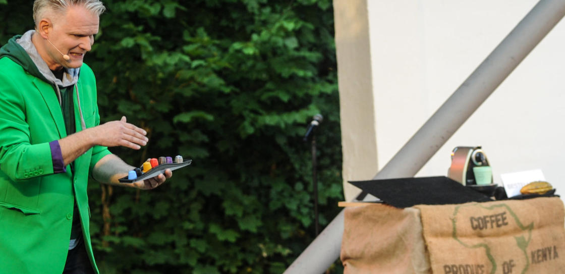 Der Umweltmagier zaubert mit Kaffee: Eine Show für Fair Trade und Nachhaltigkeit