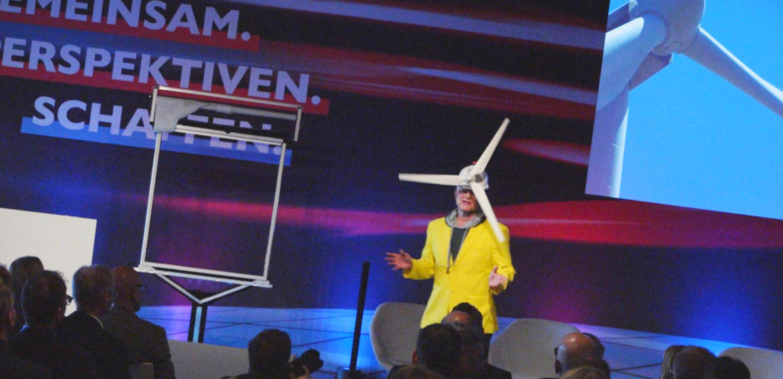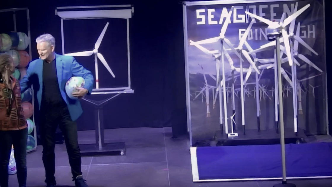 Diese einzigartige Illusion hat Freddie Rutz selbst entwickelt. Er präsentiert sie auf Nachhaltigkeit Events und Firmenveranstaltungen, besonders für Energie Unternehmen, die Windräder produzieren.Freddie liebt das Geräusch des Windes, der einen Propeller dreht und Strom erzeugt. Er würde es am liebsten direkt vor sein Küchenfenster stellen. Angesichts der Diskussionen um Lärmemissionen fragt er sich, warum Windräder einen Mindestabstand von 500 Metern zu Häusern einhalten müssen, während Autobahnen seit Jahrzehnten mitten durch Städte verlaufen.