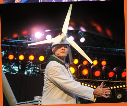 Diese einzigartige Illusion hat Freddie Rutz selbst entwickelt. Er präsentiert sie auf Nachhaltigkeit Events und Firmenveranstaltungen, besonders für Energie Unternehmen, die Windräder produzieren.Freddie liebt das Geräusch des Windes, der einen Propeller dreht und Strom erzeugt. Er würde es am liebsten direkt vor sein Küchenfenster stellen. Angesichts der Diskussionen um Lärmemissionen fragt er sich, warum Windräder einen Mindestabstand von 500 Metern zu Häusern einhalten müssen, während Autobahnen seit Jahrzehnten mitten durch Städte verlaufen.